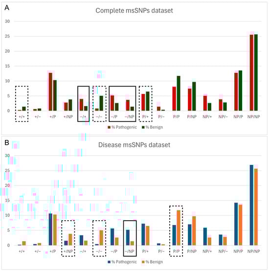 3.3.3. Examining the Distribution of Residue Substitutions in Relation to the Pathogenicity Status of msSNPs