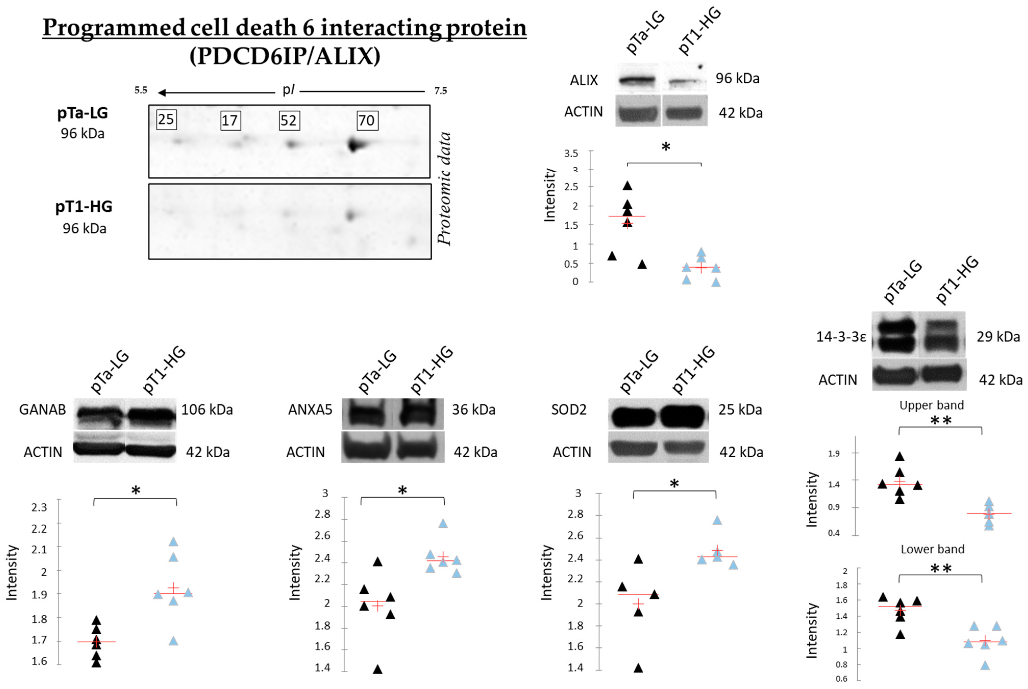 APA StyleVantaggiato, L., Frisenda, M., Shaba, E., Splendore, C., Sciarra, B., Bini, L., Sciarra, A., & Landi, C. (2025). Proteomic Profiling of Non-Muscle Invasive Bladder Cancer Reveals Stage-Specific Molecular Signatures and Prognostic Biomarkers. Proteomes, 13(4), 65. https://doi.org/10.3390/proteomes13040065