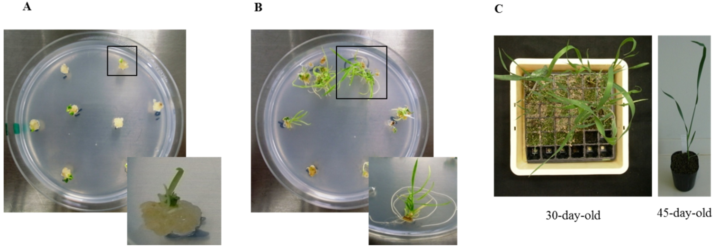 2.3. Isolation of Scutellar Tissues from Immature Embryos