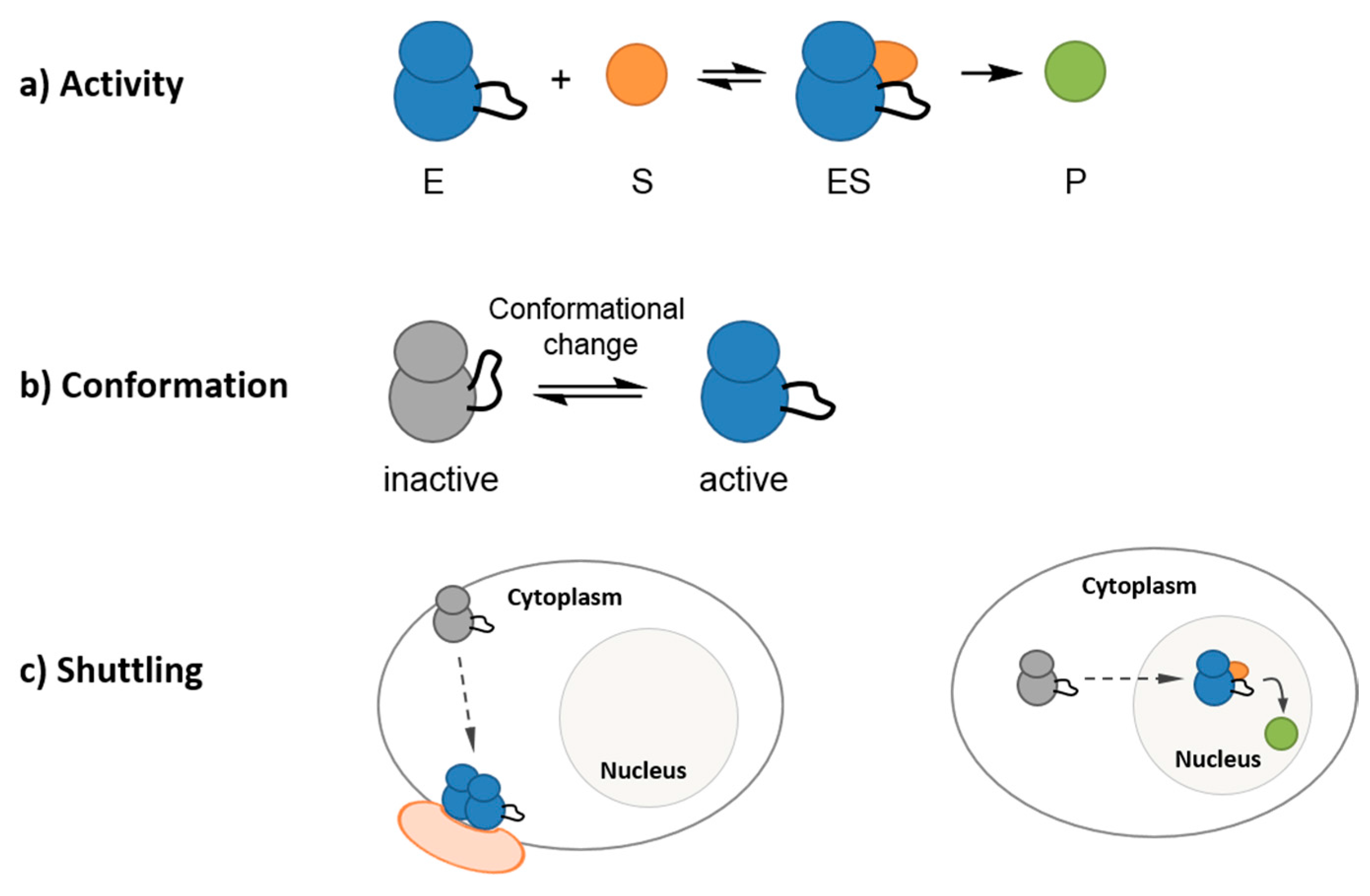 Importantly, the vast majority of protein kinases are subject to direct or indirect alterations in their abundance, subcellular localization, activity and overall function in human pathologies, due to their own overexpression, genetic amplification, alternative splicing or mutation, or associated with alterations in regulatory partners or cofactors which influence their overall function. The development of efficient therapeutic strategies to target these dysfunctional enzymes relies on tools and technologies to undermine their alterations.