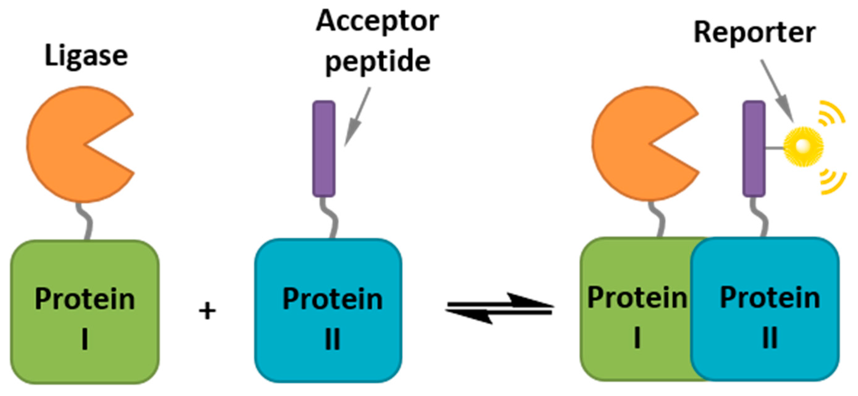 - Chen, I.; Howarth, M.; Lin, W.; Ting, A.Y. Site-specific labeling of cell surface proteins with biophysical probes using biotin ligase. Nat. Methods 2005, 2, 99–104. [Google Scholar] [CrossRef] [PubMed]