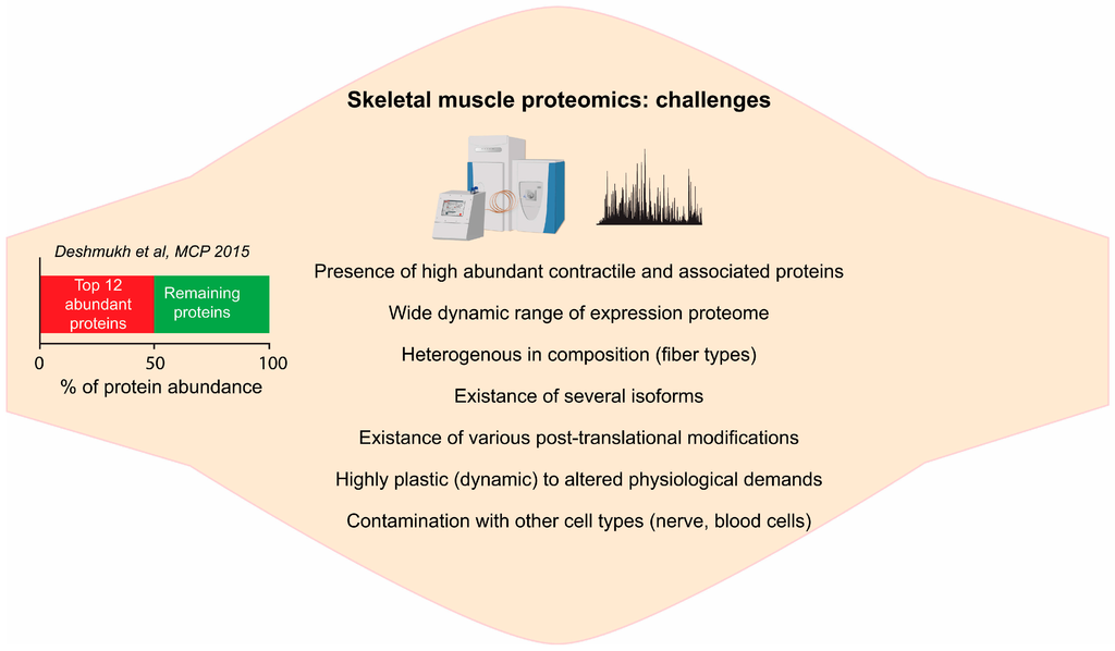 Challenges in skeletal muscle proteomics: summary of the various challenges in skeletal muscle proteomics.