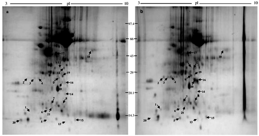 4.2. Protein Extraction and 2-D Gel Electrophoresis