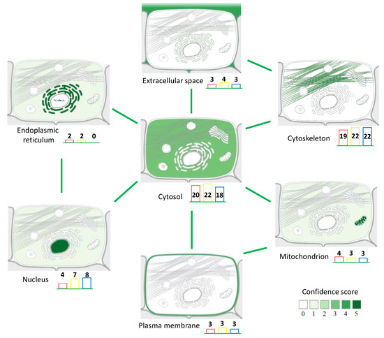 - Binder, J.X.; Pletscher-Frankild, S.; Tsafou, K.; Stolte, C.; O’Donoghue, S.I.; Schneider, R.; Jensen, L.J. COMPARTMENTS: Unification and visualization of protein subcellular localization evidence. Database 2014. [Google Scholar] [CrossRef] [PubMed]