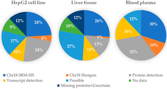 - Zgoda, V.G.; Kopylov, A.T.; Tikhonova, O.V.; Moisa, A.A.; Pyndyk, N.V.; Farafonova, T.E.; Novikova, S.E.; Lisitsa, A.V.; Ponomarenko, E.A.; Poverennaya, E.V.; et al. Chromosome 18 transcriptome profiling and targeted proteome mapping in depleted plasma, liver tissue and HepG2 cells. J. Proteome Res. 2013, 12. [Google Scholar] [CrossRef] [PubMed]