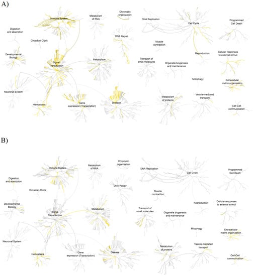 - Croft, D.; O'Kelly, G.; Wu, G.; Haw, R.; Gillespie, M.; Matthews, L.; Caudy, M.; Garapati, P.; Gopinath, G.; Jassal, B.; et al. Reactome: A database of reactions, pathways and biological processes. Nucleic Acids Res. 2011, 39, D691–D697. [Google Scholar] [CrossRef] [PubMed]