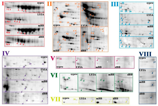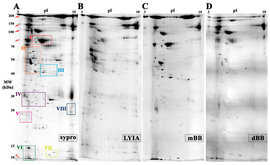 - Oliveira, B.M.; Coorssen, J.R.; Martins-de-Souza, D. 2DE: The phoenix of proteomics. J. Proteomics 2014, 104, 140–150. [Google Scholar] [CrossRef]