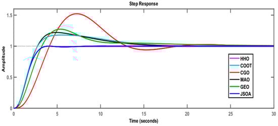 The numerical efficiency, effectiveness, and stability of the JSOA algorithm developed in this study were tested by solving 20 classical well-known benchmark optimization functions reported in the literature []. The classification of the testbench functions can be observed in Table A1. The unimodal functions allow testing the exploitation ability (local search) since they only have one global optimum []. In contrast, multimodal functions can test the exploration ability (global search) since they include many local optima []. Table A2 summarizes these testbench functions where Dim indicates the dimension of the function, Interval is the boundary of the function’s search space and is the optimum value. The shapes of the testbench functions considered in this study are shown in appendix A. The JSOA algorithm was compared with ten state-of-the-art bio-inspired algorithms taken from the literature; these are Coot Bird Algorithm (COOT) [], Chaos Game Optimization (CGO) [], Mexican Axolotl Optimization (MAO) [], Golden Eagle Optimizer (GEO) [], Archimedes Optimization algorithm (AOA) [], Arithmetic Optimization Algorithm (ArOA) [], Gradient-based Optimizer (GBO) [], Hunger Game Search (HGS) [], Henry Gas Solubility Optimization (HGSO) [] and, Harris Hawks Optimization (HHO) []. For each testbench function, the eleven algorithms were run 30 times, the size of the population (search agents) and the number of iterations were set to 30 and 200, respectively. The entire parameter settings for all algorithms are shown in Table 1.