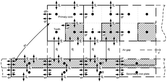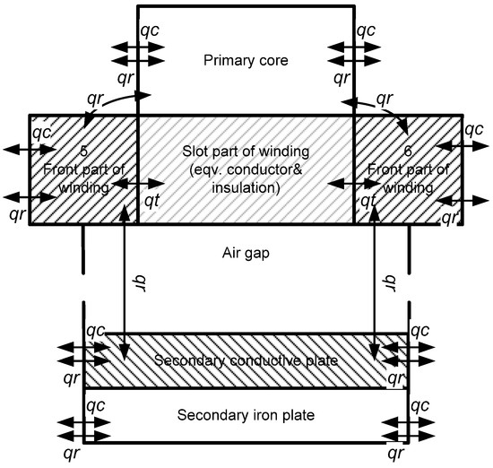 Electromagnetic asymmetry along the length of the primary can lead to a significant difference in the distribution of losses along its length and, therefore, to the differences in the thermal processes between the LIM and the rotating IM [7]. This occurrence is common in transport systems when a LIM consists of several primaries and one secondary, which forms an endless conductive plate. In this case, once in motion, the primaries can be in different thermal conditions because the conductive plate gradually heats up while passing through the zone of each primary. Therefore, a phenomenon of the heat transfer from the primary through the air gap takes place. In the LIM technological applications, the secondary is often a part of an actuating element of the technological machine, which also leads to heat transfer specifics.