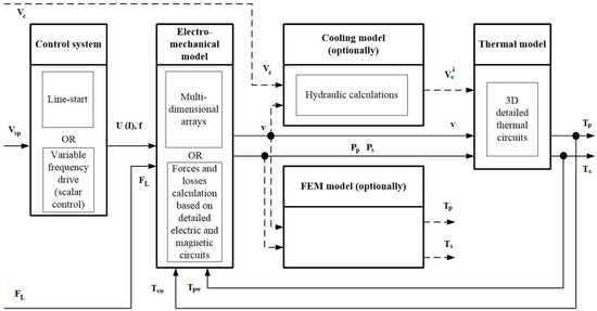 Implementation of the electromechanical and thermal models in the MATLAB/Simulink based on the aforementioned equations and multidimensional arrays described in detail in [44].