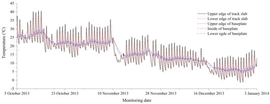 - As the main concern is the vertical temperature gradient that causes the warping deformation of the track slab, the temperature sensors are arranged in layers from top to bottom.