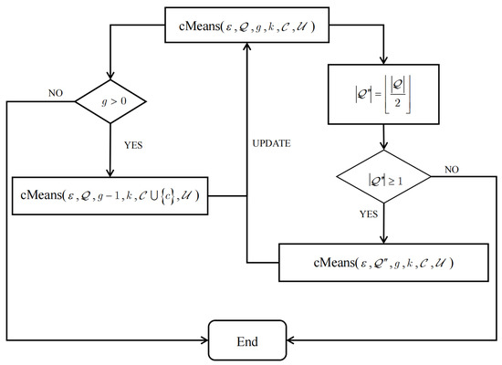 Lemma 17. Given an instance of the uncertain constrained k-means problem, where the size of is n, for , we assume that by using our algorithm (ϵ, , k, C, U) (C and U are initialized as empty sets), a collection U of candidate sets including approximate centers is obtained. If there exists a set in U satisfying that , then is a -approximation for the uncertain constrained k-means problem.