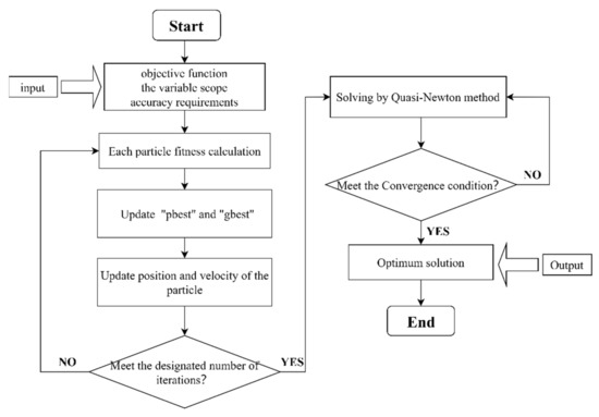 Flow chart of the PSO–QNMs hybrid algorithm.