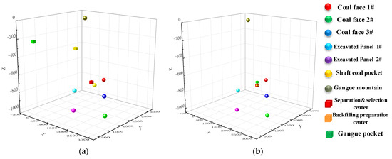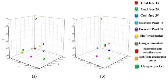 However, since integrated technologies of the mining–dressing–backfilling system are proposed, it is destined to be a coordinated process of multiple systems in engineering application. On the basis of the existing research to clarify the system composition and structure function of the “mining–dressing–backfilling” system, it is of great significance for the future development of this technology to systematically analyze the operating characteristics of deep underground gangue logistics and the interfeeding linkage relationship. The study of this problem necessarily involves the efficient layout of the “mining–dressing–backfilling” system; first, we must choose the location of the crucial underground “logistics” node, which is the basis to ensure the efficient and coordinated transportation of coal and gangue logistics. The current research results on this issue are relatively few. Wang Jinfeng et al. combined the complex characteristics of a coal mine production logistics system and studied the safety resource allocation, safety evaluation, and production logistics efficiency; further systematic research was conducted on optimization methods to maximize the efficiency of coal mine production logistics systems and rationalize safety resources [10,11,12,13]. Based on exploring the key factors affecting the efficiency of the logistics system, Xia Dan et al. used a system dynamics approach to dynamically analyze and predict the efficiency of a complex production logistics system for the integrated technologies of mining–dressing–backfilling systems and calculated the true impact rate of different production steps on the production level [14]. Although these studies have dealt with the efficiency of the integrated production and logistics of “mining–dressing–backfilling” systems, they are all from the perspective of macromanagers and have not really achieved substantial research on the logistics node location selection and optimization of the system layout.