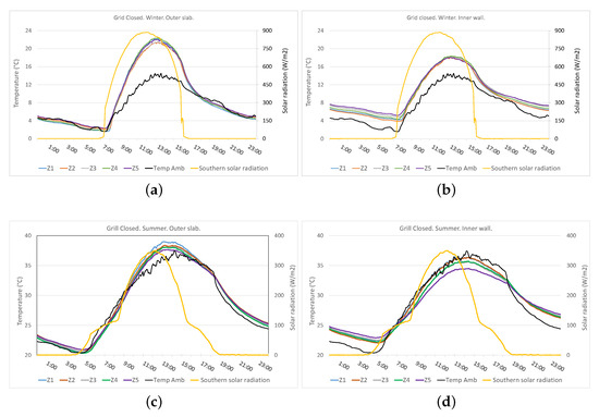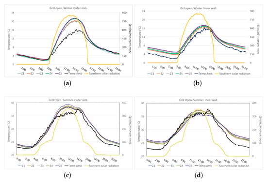 The measurements have been carried out for distinct experimental protocols, with open and closed opening grills, to investigate the influence of the different ventilation grills configurations on the OVF energy performance under different climate conditions: winter, spring and summer. In the experimental monitoring, the window blind was left closed and HVAC and ventilation systems were kept off.