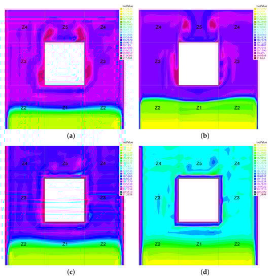 Finally, it should be noted that the presence of the window introduces an obstacle to the flow of air through the ventilated chamber, which which makes the air flow clearly three-dimensional. Thus, the two-dimensional hypothesis usually applied in the modeling of ventilated façades is not suitable in this case, so that three-dimensional modeling of the thermodynamic behavior of the airflow in the OVF is needed.