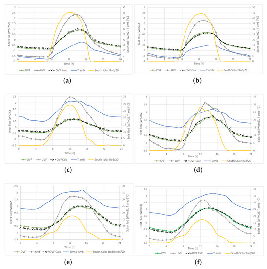 Regarding the reduction of solar gains and energy savings, Fantucci et al. [29] assessed the effect of OVFs to reduce solar gains and found that this reduction was in a range between 52% and 64%. Patania et al. [5] used the Fluent software to investigate the thermal behavior of three different types of ventilated façades; the authors concluded that for the summer period, the ventilated façades achieved energy saving rates of more than 40% over unventilated ones. Marinosci et al. [30] used ESP-r software for the experimental and numerical study of the energy performance of a ventilated façade with a rain screen; based on the thermal analysis carried out, the authors concluded that the façade studied is capable of reducing energy consumption for indoor heating and that the numerical model built with ESP-r is useful for engineering design. Giancola et al. [8] experimentally and numerically analyzed the energy behavior of an open joint ventilated façade; from the experimental monitoring they concluded that in hot climates with high solar radiation, ventilated façades can reduce heating and cooling thermal loads when outdoor temperatures are not extreme; in addition, they developed a simulation model using Fluent software that exhibited good numerical properties, predicting temperatures and heat fluxes with errors below . Gagliano et al. [9] performed CFD simulations during the summer for different wind conditions and calculated the heat flux through a ventilated and an unventilated façade; the authors concluded that that there was a 47–51% reduction in heat flux through the ventilated facade compared to the unventilated one.
