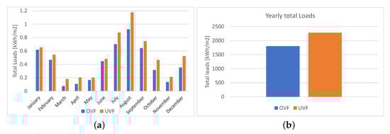 In the next stage, the validated simulation model was used to ascertain the energy savings provided by the OVF when compared to the UVF, for a typical climatic year in the city of Seville. This step, detailed in Section 7.2 provided conclusions about the winter penalty and the summer energy savings.