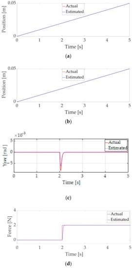 We utilized the Sawyer motor parameters, control gains, and augmented nonlinear observer gains listed in Table 1. The desired position profiles were those of the ramp function as shown in Figure 3, and the yaw desired profile was set to 0 rad.