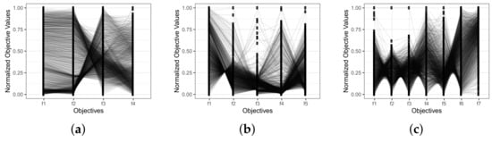 - Tušar, T.; Filipič, B. Visualization of Pareto Front Approximations in Evolutionary Multiobjective Optimization: A Critical Review and the Prosection Method. IEEE Trans. Evol. Comput. 2015, 19, 225–245. [Google Scholar] [CrossRef]