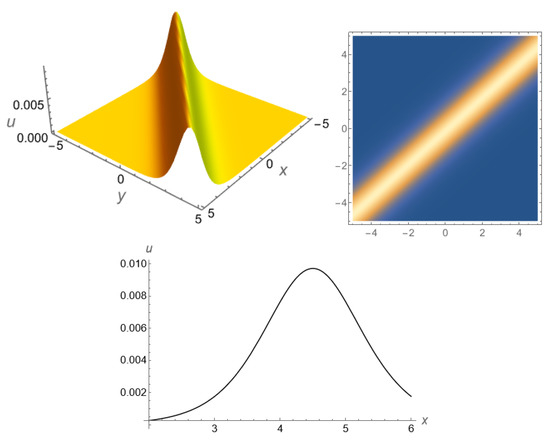 where . Figure 4 illustrates the solution (34) with the parameters assigned to be and .