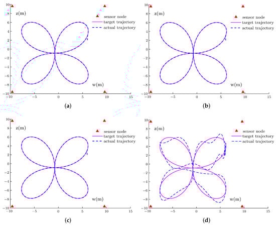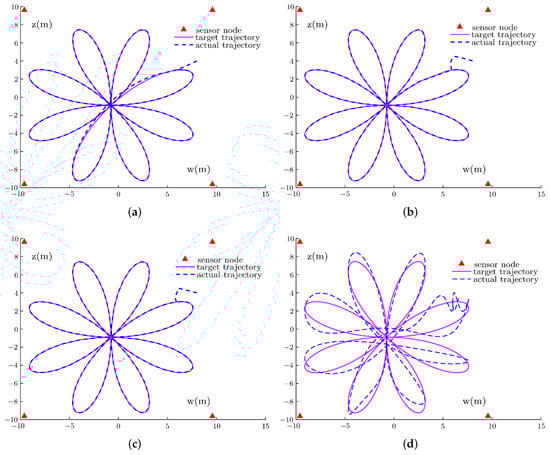 In this example, the four sensor nodes coordinates are the same as in Section 5.3. Besides, the specified target trajectory is