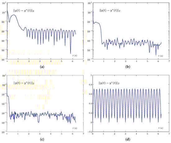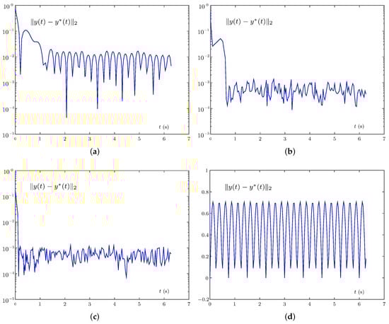 in which . It is evident that is negative definite, so the zero solution of is globally asymptotically stable. That is, can decay to zero within time . Without losing generality, we consider and .