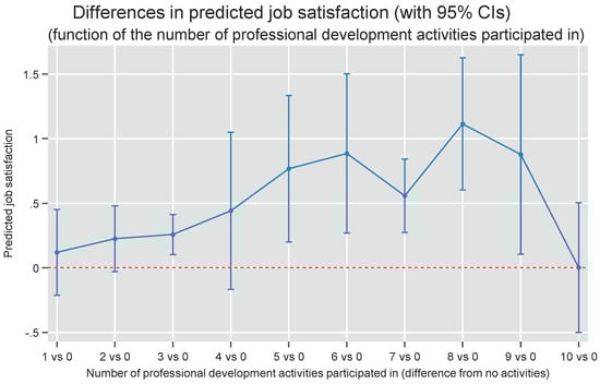 In order to investigate this, we use a large scale international dataset collected by OECD, more specifically, the 2018 version of the Teaching and Learning International Survey (TALIS) [56], to estimate a multilevel model (also known as hierarchical linear model (HLM)) explaining job satisfaction of teachers. In addition to the professional development variables that were already mentioned, we added several other (control) variables that were found to be relevant in the earlier literature on this topic. We find that the number of professional development activities participated in has a positive relationship with job satisfaction. Regarding the need for professional development, two indicators capturing two distinct need aspects were used: the need for professional development for teaching diversity and special needs and need for professional development in subject matter and pedagogy. The former shows a positive relationship with job satisfaction for teachers who did not participate in any professional development activities. This positive relationship becomes less positive (and becomes eventually negative) with increasing values of participation. The latter need indicator reveals an opposite relationship: initially (i.e., with no participation in professional development), we find a negative slope becoming less negative (and eventually becoming positive) with increasing values of participation.