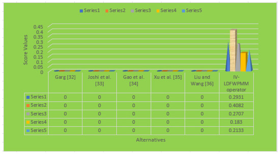 - Similarly, the pair includes interval-valued MG and NMG. The IV-PFS approach gives the result: . Hence, the technique of IV-PFS creates a problem for experts.