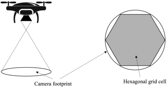 Through a two-phase process, this study creates a path for multiple UAVs to search a given area. In phase 1, path planning begins by dividing the search area using the hexagonal grid decomposition method. Figure 4 shows the camera footprint in the UAV expressed as a hexagonal grid cell.