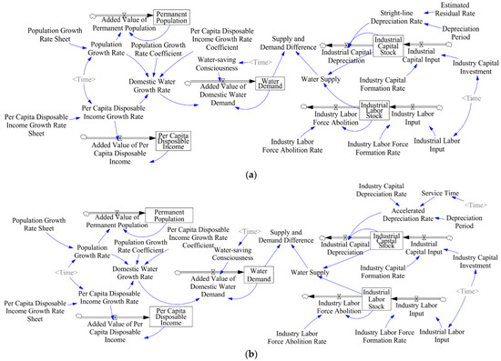 - Li, K.B.; Ma, T.Y.; Wei, G.; Zhang, Y.Q.; Feng, X.Y. Urban Industrial Water Supply and Demand: System Dynamic Model and Simulation Based on Cobb–Douglas Function. Sustainability 2019, 11, 5893. [Google Scholar] [CrossRef]