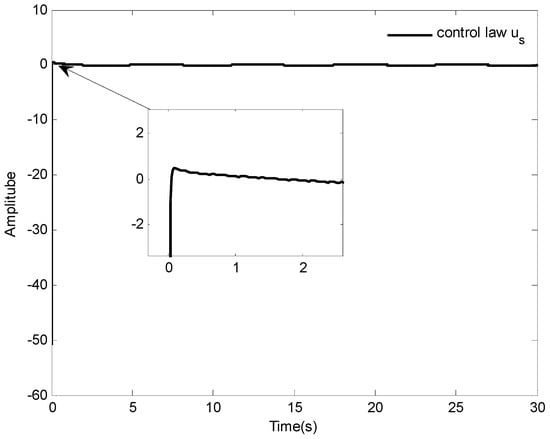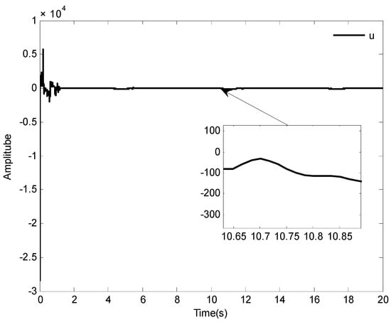 The initial conditions are given as , the reference signal is given as . Some simulation parameters are set as: , , , . Other parameters are the same as in Case 1. The simulation results are depicted in Figure 9, Figure 10, Figure 11, Figure 12, Figure 13 and Figure 14.