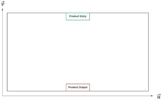 The expected value of the travel distance is used to obtain an energy consumption function as a function of the distance covered. To calculate the warehouse cost function, the expected value of the distances covered on the horizontal plane is defined as and , and on the vertical axis as . As indicated above, the doors are located in the middle of the longest wall, therefore, the distance covered in is at most /2. On average, this would be half of that amount, i.e., /4, as shown in Equation (4) for the expected distance.