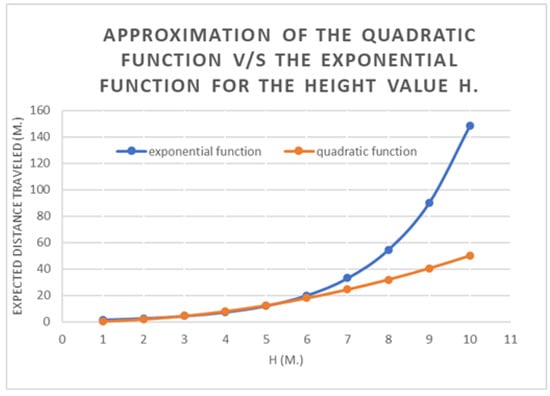 This function approximates the values of the exponential. However, for very high height values, we obtain values that are lower than the real ones. The comparison of both variables is shown in the following chart (Figure 2).