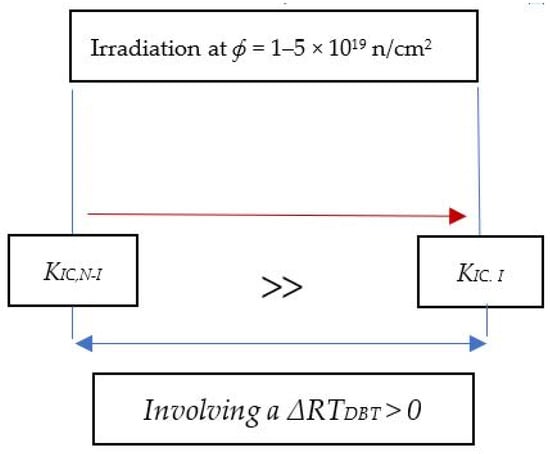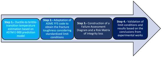 - According to the methodology outputs, it would be recommended that the brittle fracture should be specially monitored under 150 °C. This agrees with the conclusions of Pachur [67] that showed an irradiation temperature of 150 °C produces the greatest brittleness of the material, this being less for a higher temperature since irradiation temperature favors the repair of defects by annealing.