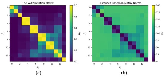 | Classification based on the correlation of the principal component matrices using the Frobenius norm (Figure 8b) | Trend: {σ0, σ1, σ2} Harmonic: {σ3, σ4; σ5, σ6; σ7, σ8; σ9, σ10} Noise: {σ11–σ19} |