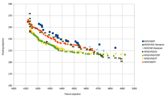 Results of MOGVNS/P, MOGVNS/CDP and MOGVNS/D for the failure cost as a second objective.