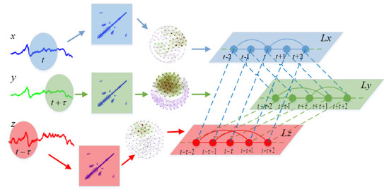 In this way, we obtained the construction schematic diagram of delay time-varying recurrence network mapped from multivariate time series, as shown in Figure 1.