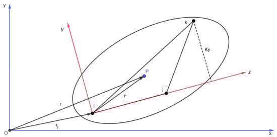 where is the vector that contains the FCC of the element. Note that matrix is constant for a given point P and does not change with the system’s motion, thus fulfilling Equations (4) and (5).