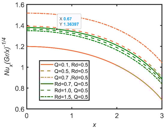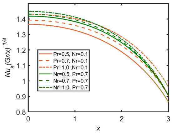 Comparison for Nusselt number against x.