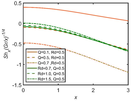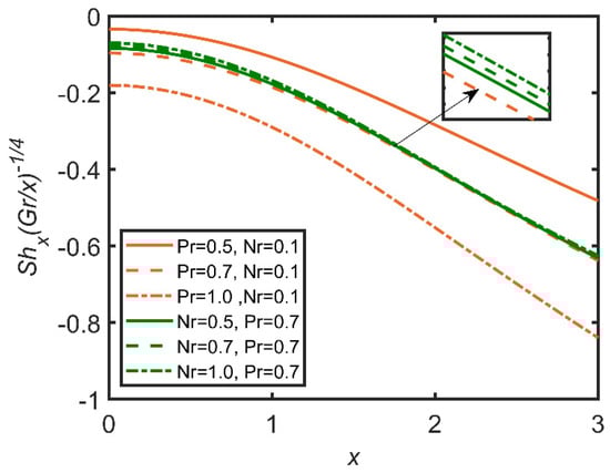 Comparison for Sherwood number against x.