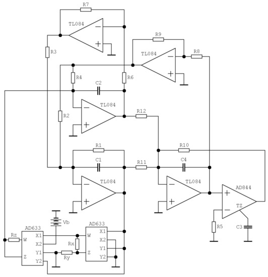 - Kilic, R.; Yildrim, F. A survey of Wien bridge-based chaotic oscillators: Design and experimental issues. Chaos Solitons Fractals 2008, 38, 1394–1410. [Google Scholar] [CrossRef]