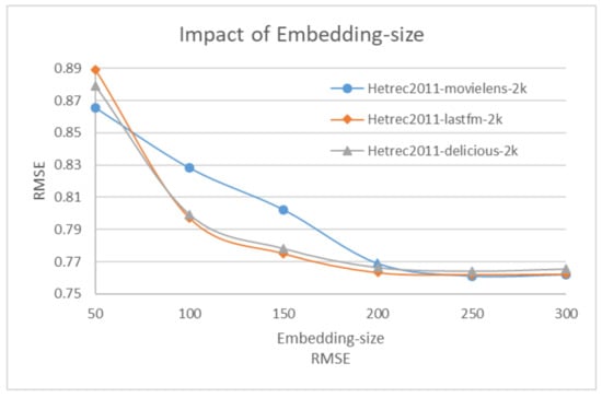 - When the size of embedding is 200, the best result is obtained on hetrec2011-lastfm-2k. When it is 300, it works best on the other dataset. After analysis, we believe that this is related to the sparsity of the data itself.