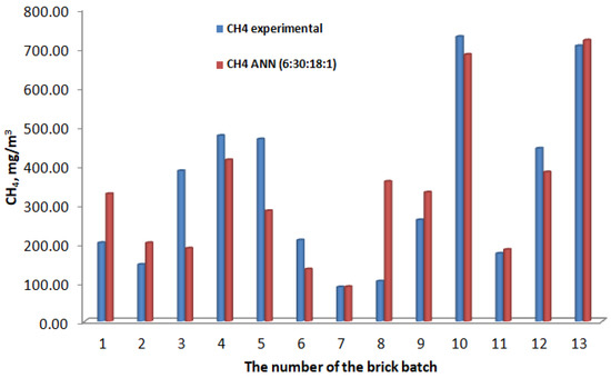 Experimental values for CH4 compared to those obtained with the ANN (6:30:18:1) model.