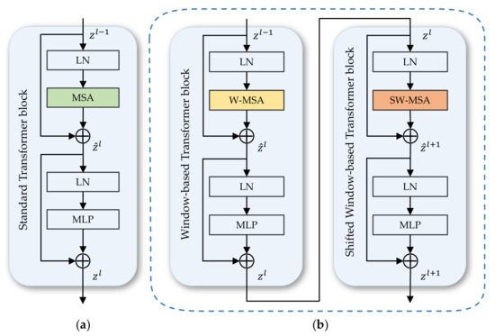 - Liu, Z.; Lin, Y.; Cao, Y.; Hu, H.; Wei, Y.; Zhang, Z.; Lin, S.; Guo, B. Swin Transformer: Hierarchical Vision Transformer using Shifted Windows. In Proceedings of the IEEE/CVF International Conference on Computer Vision, Montreal, BC, Canada, 11–17 October 2021. [Google Scholar] [CrossRef]