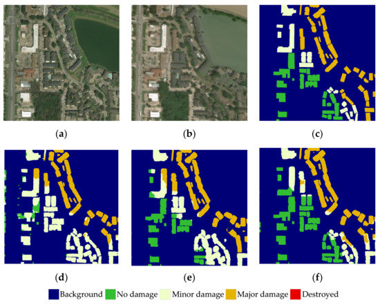 - Gupta, R.; Shah, M. Rescuenet: Joint Building Segmentation and Damage Assessment from Satellite Imagery. In Proceedings of the 25th International Conference on Pattern Recognition, Milan, Italy, 10–15 January 2021; pp. 4405–4411. [Google Scholar] [CrossRef]