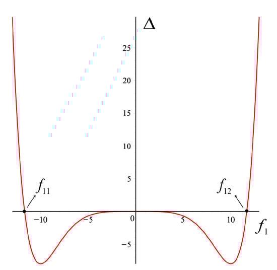 If , and , Equation (17) becomes a quadratic equation of with , and the image of function
