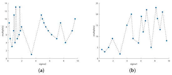 The scatter plots between multiple periods and free parameter: (a) Free parameter ; (b) Free parameter .