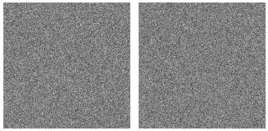 Moreover, in this section we evaluate the randomness of sequences generated according to Rule C using the Statistical Test Suite (STS) [44] proposed by the National Institute of Standards and Technology (NIST), which is one of the most used suites for evaluating the randomness of random numbers generators. We generate one hundred sequences, each of length 125,000 with entries in , which is equivalent to bits. We then map each sequence s of reals in to a sequence b of integers in , where . Table 1 presents the results of the one hundred integer sequences. On the basis of these results, the integer sequences possess similar properties as truly random sequences. Hence, the integer sequences generated according to Rule C seem promising for use in cryptographic applications.