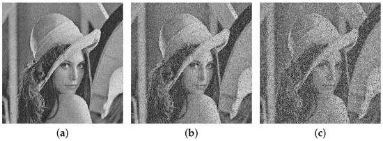 Reconstructed Lena from a JPEG compressed cipher image: (a) quality factor 80, (b) quality factor 60, and (c) quality factor 40.
